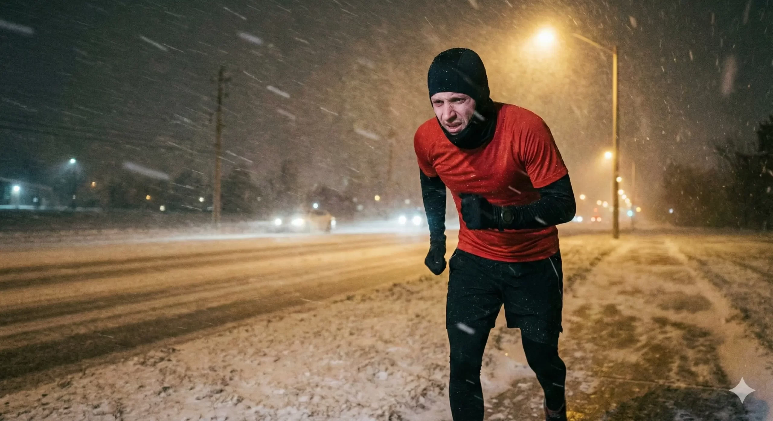 Czaisz, że biegłem w takim tunelu poznawczym, że totalnie nie dotarło do mnie, że biegnę pod wiatr i od 15 minut pada śnieg? Zorientowałem się o tym w krytycznym momencie biegu. Pękła „osiemnastka”, czyli moja życiówka sprzed tygodnia. Wiedziałem, że nie ma ch**a we wsi, żebym odpuścił. I okazało się, że nawet siły natury są przeciwko mnie. Cóż zatem – balaklawa na łeb (z 10 km wcześniej zsunąłem ją tylko na czoło, teraz wróciła na szyję i uszy), zagryźć zęby i – tu zostawię już bez gwiazdek – zapierdalać!