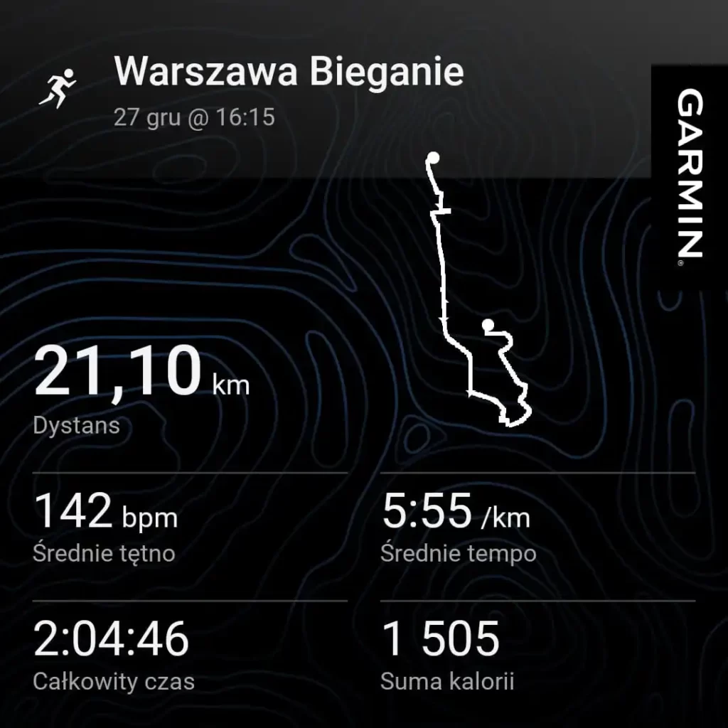 2:04:46. Nie tak szybko, jak bym chciał, ale ze świadomością warunków. Podświadoma asekuracja na gołoledzi + fakt, że biegłem w treningowych Pumach, podczas gdy we Wiązownej pobiegnę w Saucony Endorphin Speed 4. To wszystko może mi dać nawet 15 sekund na kilometrze.