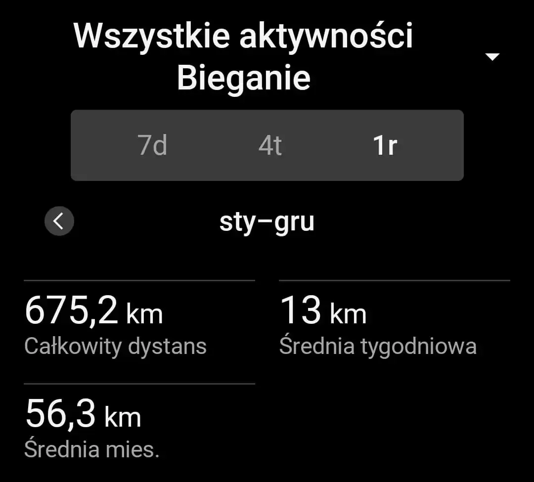 675 kilometrów… Na cały rok to byłby wynik bez przesadnego szału, ale biorąc pod uwagę, że do biegania wróciłem w czerwcu (i wtedy byłaby to bardziej walka o życie) to myślę, że jest lepiej, niż spoko. Biegowo to był świetny rok. A kolejny będzie w każdej materii lepszy.