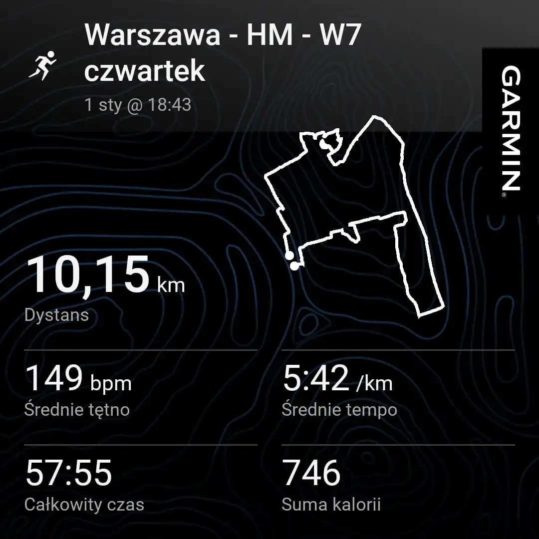 Dlatego wynikowo nie było przesadnie dobrze, acz Garmin przesadza, twierdząc, że zrobiłem trening na 21%. Spadaj, dziadu. Robiłem co mogłem 🙂