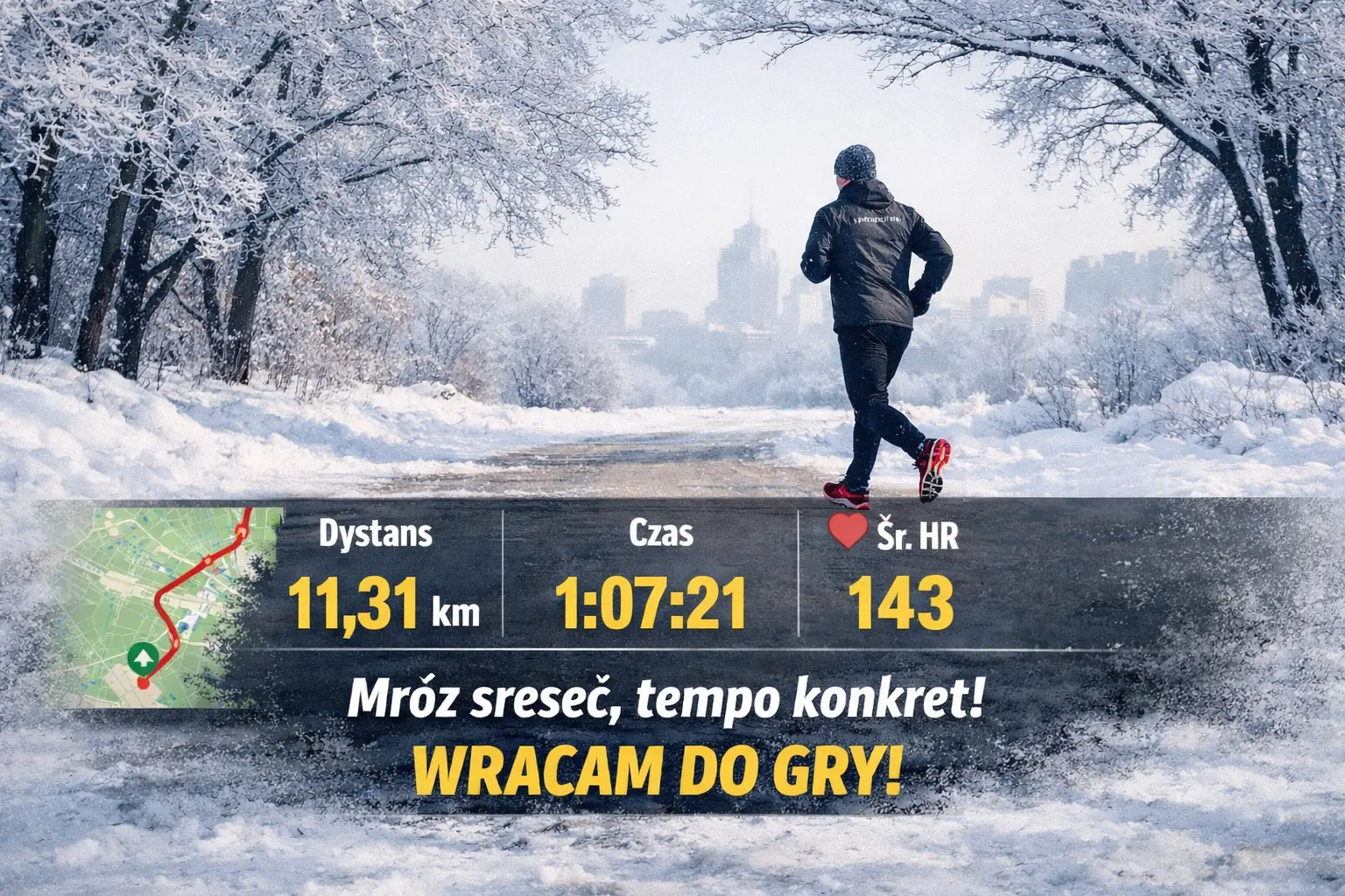 Kto nigdy nie szukał wymówek, żeby nie wychodzić w mróz z domu niech pierwszy rzuci kamieniem. Gdyby to była wiosna, czy lato, to bym po prostu wziął dupę w troki i poszedł. Ale wiedziałem, że muszę. Że tak naprawdę od Nowego Roku nie miałem normalnego tempowego treningu zgodnie z planem. Takiego jak zapisany, dokładnie w ten sposób przebiegniętego, bez skracania, bez tej cholernej bieżni. A tu już niewiele ponad miesiąc do półówki. No musiałem się ogarnąć, choćby skały srały.