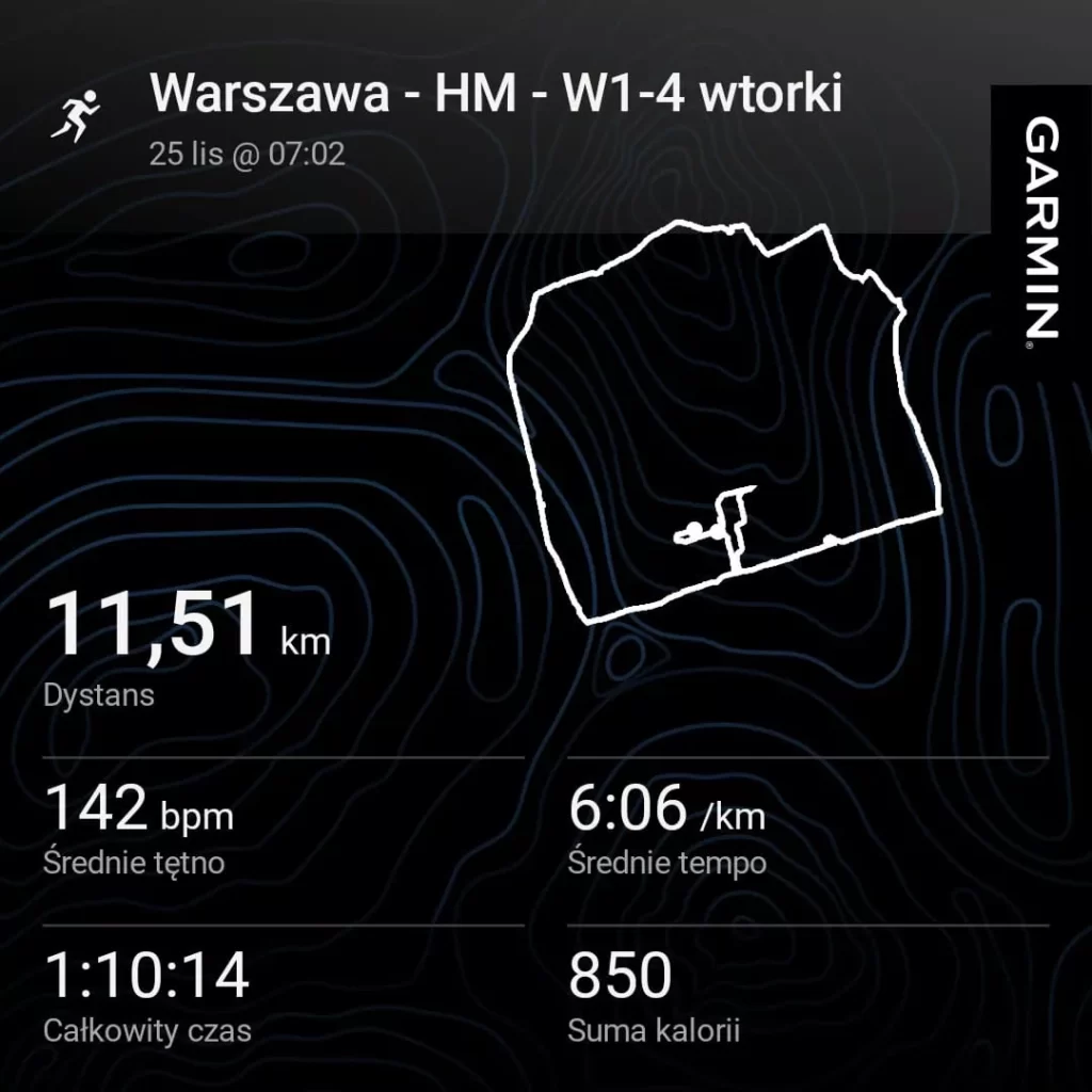 Niby pobiegałem całkiem zacnie, a Garmin wciąż uporczywie twierdzi, że mój poziom wytrenowania to „Utrzymanie”. Kurde – albo mam już tak zajebistą formę, że lepiej się nie da (taaaa, jasne – ja chcę jeszcze do półmaratonu urwać z 10-20 sekund z progu mleczanowego!) albo Garmin jest… nie wiem, uparty? Chat GPT twierdzi, że to kwestia formuły treningu. Że niby wysiłek beztlenowy na 2.0, ale to raptem 3 przebieżki po 100 m i że to dla dziada za mało 🙂 Nic to – zobaczymy, co będzie w czwartek, w planie 3×2 km w tempie półmaratońskim (a nawet nieco szybszym, bo w 5:10 to ja całej połówki nie pobiegnę).