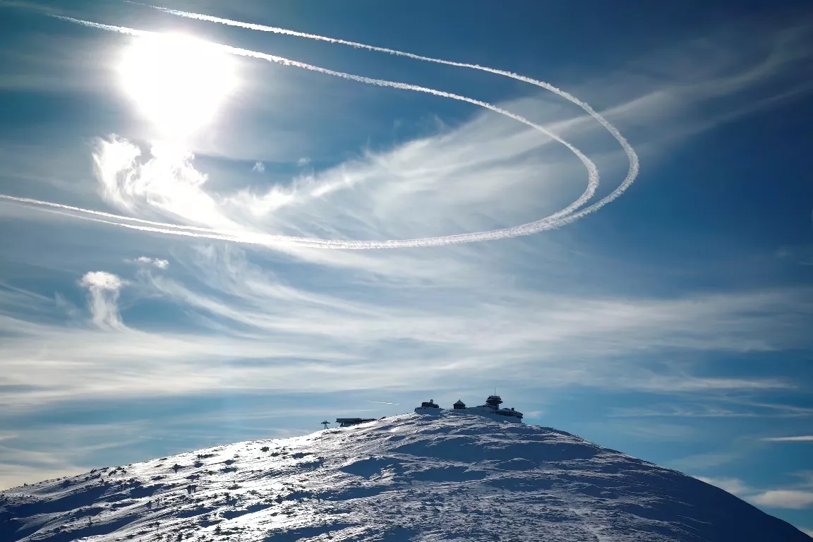 No. To poszedłem 4 km na Śnieżkę. Nie mogłem jej ominąć dołem (bo ten szlak zamykany jest w zimę ze względu na zagrożenie lawinowe). No to wlazłem na nią (mówiłem – przypadkiem) i ruszyłem w dół do górnej stacji wyciągu na Kopę. No i spoko. Byłem tam o 16.27, ostatni kurs o 16.